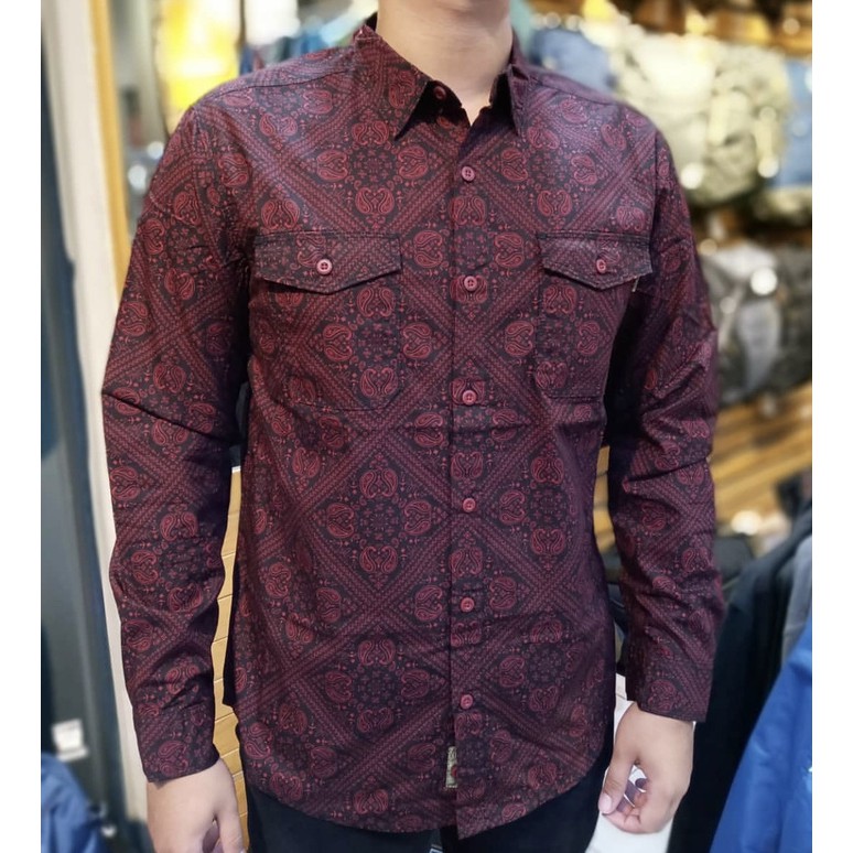 Eiger Kemeja Batik Peasley Long Sleeve Merah Shopee Indonesia