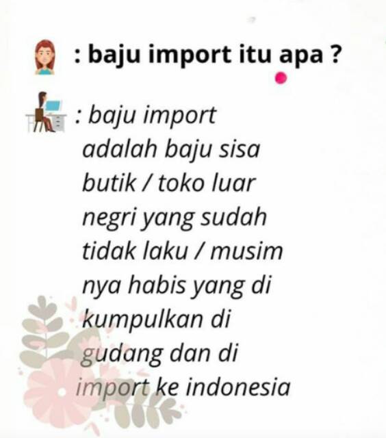 872013 Karena berdagang baju import sebenarnya termasuk berjualan baju sisa butik import. 1032019 Jika sudah pernah membaca dan mempelajari beberapa hal mengenai import anda pasti setidaknya pernah membaca sebutan ini. Artinya sejumlah ketentuan dan peraturan Pemerintah berlaku dalam proses impor tersebut.