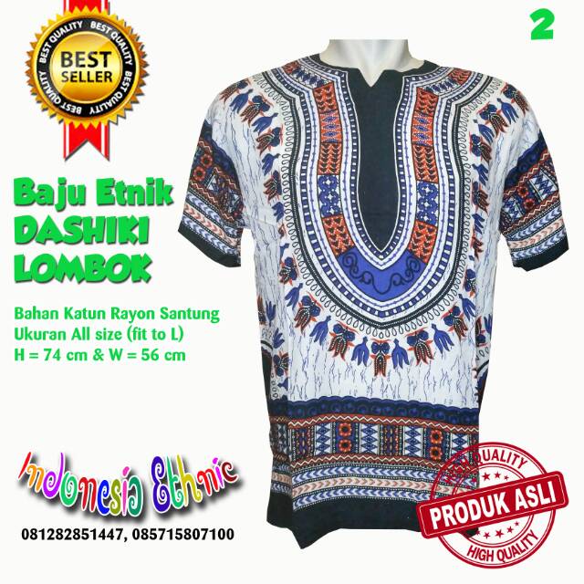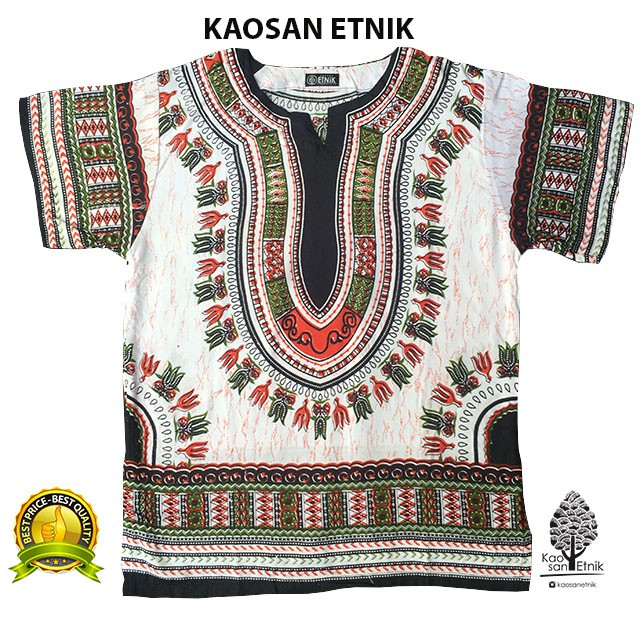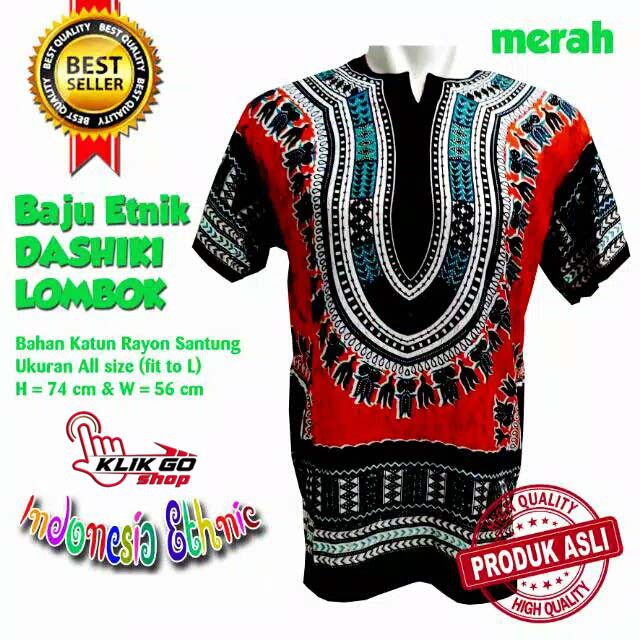Beli BAJU ETNIK DASHIKI KHAS LOMBOK WARNA PUTIH. Harga Murah di Lapak KLIK GO SHOP. Kaos Etnik Dashiki ini terbuat dari bahan santung dengan ukuran kurang lebih 55 x 75 cm.